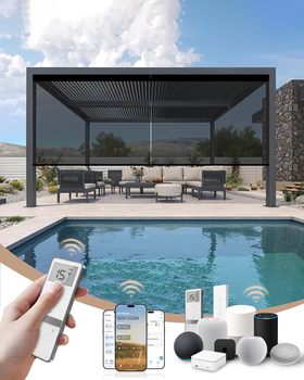 Custom Motorized Outdoor Blinds - Waterproof Windproof Patio Porch Shades with Remote, Compatible with Google Alexa